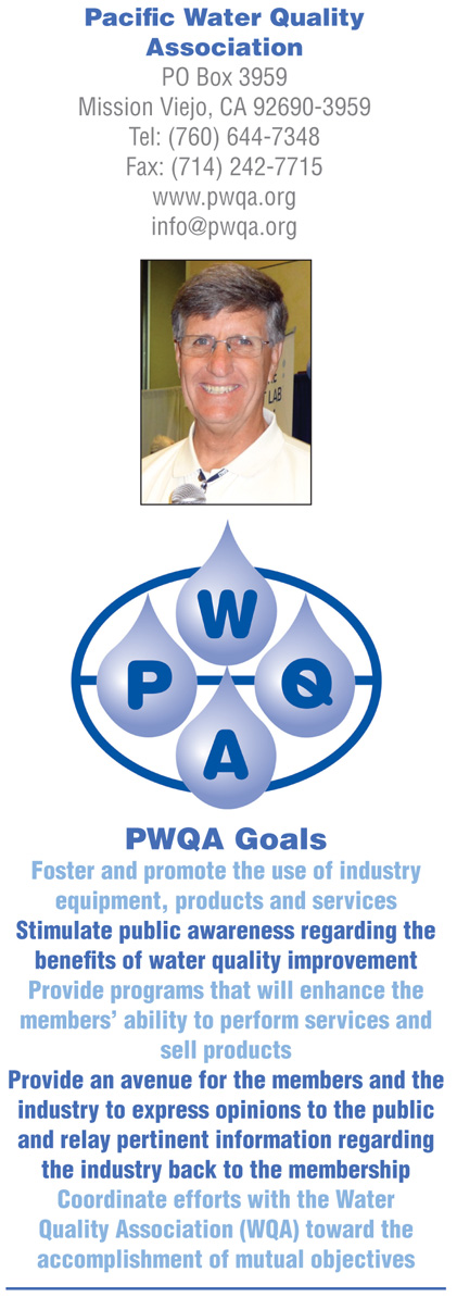 Now Ruef is leading the 60-year-old nonprofit that began as the Pacific Water Conditioning Association and was renamed in 1975 to better emphasize the membership’s involvement with all aspects of the water quality improvement industry. “It’s not just water conditioning, but POE, POU, filtration…the whole nine yards,” Ruef said. PWQA serves water improvement professionals, predominantly in the western US. Members include retailers, assemblers, manufacturers and suppliers, as well as auxiliary companies. “I’m committed to the PWQA as long as they need me. That’s how strongly I feel. I love the industry. It’s been good to me and I find it very, very interesting.”