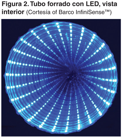 Diseño del reactor. El desafío principal del diseño es aumentar la eficiencia general del sistema, diseñando un reactor UV altamente eficiente. Debido a las diferencias en los perfiles de emisión de la lámpara, las cámaras de tratamiento que incorporan LEDs tienen el potencial de ser sustancialmente diferentes de las que utilizan las lámparas convencionales a base de mercurio. El diseñador debe encontrar una manera de distribuir eficientemente esta nueva fuente de luz dentro de la cámara de reacción. Actualmente, las lámparas LED UV-C disponibles en el mercado tienen una producción inferior a 100 mW (para un solo dispositivo, alrededor de 3.5 mm2) en comparación con una lámpara de mercurio de 17-W de baja presión (alrededor de 350 mm x 15 mm). Aunque las lámparas LEDs UV-C individuales no son tan potentes como las lámparas de mercurio, su producción UV-C y densidad de potencia (producción por unidad de área) han aumentado exponencialmente en los últimos años. Como resultado de ello, se debe hacer un mayor esfuerzo en diseñar un reactor UV altamente eficiente para compensar y mantener la eficiencia global del sistema de tratamiento de agua. Algunos diseños pueden ser elegantes, como forrar una tubería con LED (como se muestra en la Figura 2), pero la eficiencia general debe ser la premisa de conducción. Quizás una vez que la tecnología LED UV-C haya madurado a los niveles de la tecnología LED visible y sean excepcionalmente eficientes, se podrán colocar en prácticamente cualquier configuración; pero por ahora, los sistemas UV-C LED sólo pueden ser eficaces cuando se construyen alrededor de diseños de reactor excepcionalmente eficientes. Existen sólo unos pocos sistemas de tratamiento UV-C LED disponibles hoy en día, cada uno de ellos con un diseño de reactor diferente. Los diseños eficientes de reactores no son fácilmente descubiertos. Los equipos de desarrollo pasan años diseñando y validando nuevas configuraciones de reactores que son más eficientes que los sistemas basados en lámparas de mercurio. Herramientas avanzadas de modelado, como la dinámica de fluidos computacional y análisis de elementos finitos, se ponen en uso junto con técnicas de medición física, tales como la bio-dosimetría y la actinometría.