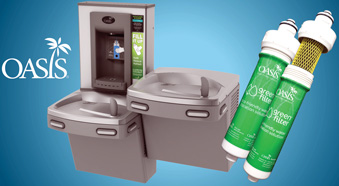 Las llenadoras de botellas Versacooler® II de OASIS® International están fabricadas con un 42% menos de acero que las unidades de la competencia, lo que las hace un 20-30% más ligeras para una instalación más sencilla. La compañía fabrica sus componentes de plástico con FRESHIELD®, un compuesto antimicrobiano exclusivo a base de plata que reduce el crecimiento de microorganismos y moho para proteger las superficies de la decoloración, los olores y la degradación, lo cual resulta en una vida útil más prolongada. El sistema Green Filter (con tecnología patentada) es casi completamente reutilizable; sólo los medios filtrantes biodegradables internos necesitan ser descartados. OASIS utiliza el refrigerante de hidrocarburo R600A fuera de los Estados Unidos, lo cual ayuda a reducir los gases de efecto invernadero. Además, las pruebas independientes indican que se consume un 25% menos de energía eléctrica con el uso del refrigerante R600 que con R134a. La refrigeración termoeléctrica (TEC), otra alternativa ecológica a un refrigerante de hidrofluorocarbono (HFC), utiliza un dispositivo de estado sólido que actúa como una bomba de calor para mover el calor de un lado del dispositivo al otro. Los TEC únicamente usan energía de corriente directa (DC); no tiene partes móviles ni conjuntos complejos; los sistemas son muy pequeños, livianos y resistentes.