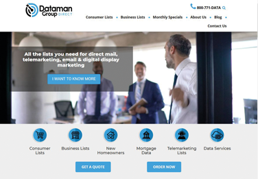 El sitio Web más rápido, más intutivo y actualizado de Dataman Group incluye vídeos, nuevos formularios emergentes y un portal de pedidos y recuento en línea más sólido. Incluye 561 páginas y ofrece a los usuarios un módulo de búsqueda sofisticado. La función Chat se ha actualizado y el blog Ask Data Dale, que se actualiza semanalmente, se ha rediseñado, ofreciendo a los usuarios la posibilidad de buscar información por etiqueta y por categoría. Además, cuenta con un archivo, con contenido que data de 2006. Los dueños de negocios en industrias específicas encontrarán minisitios dedicados que brindan información muy enfocada para las industrias de calidad del agua, seguros, atención médica, mejoras para el hogar e hipotecas, así como para organizaciones sin fines de lucro. funerarias, contadores y agentes inscritos.